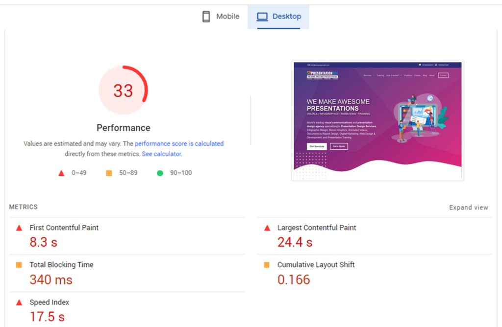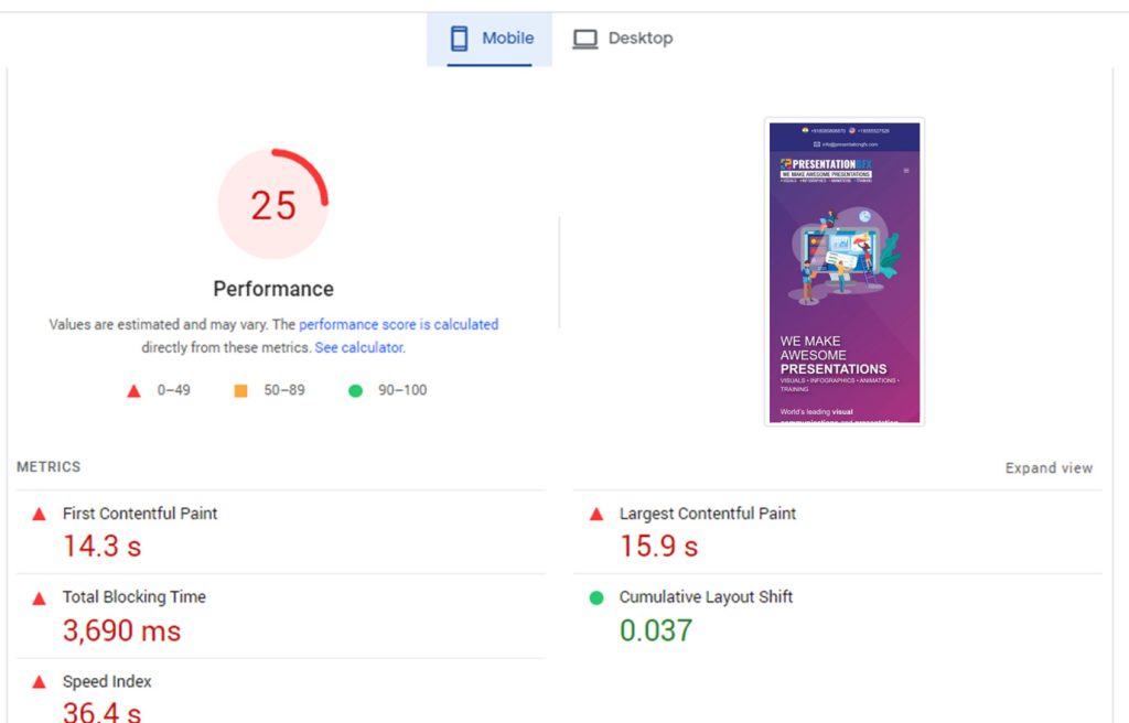 WordPress is by far the most popular CMS technology (more than 810 million websites globally) that most companies use for their websites. Typically, freelancers, agencies, and developers use pre-made templates to create their websites. This is the root of the problem. Templates and WordPress plugins come with lots of unnecessary code that might not be used for your website. This is known as bloatware because it makes the site bloated or heavy. We have also used the same, and we got terrible results. Here are some examples: