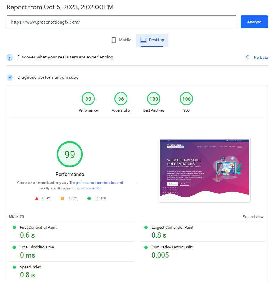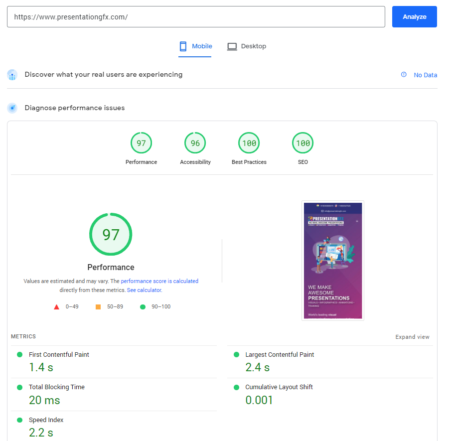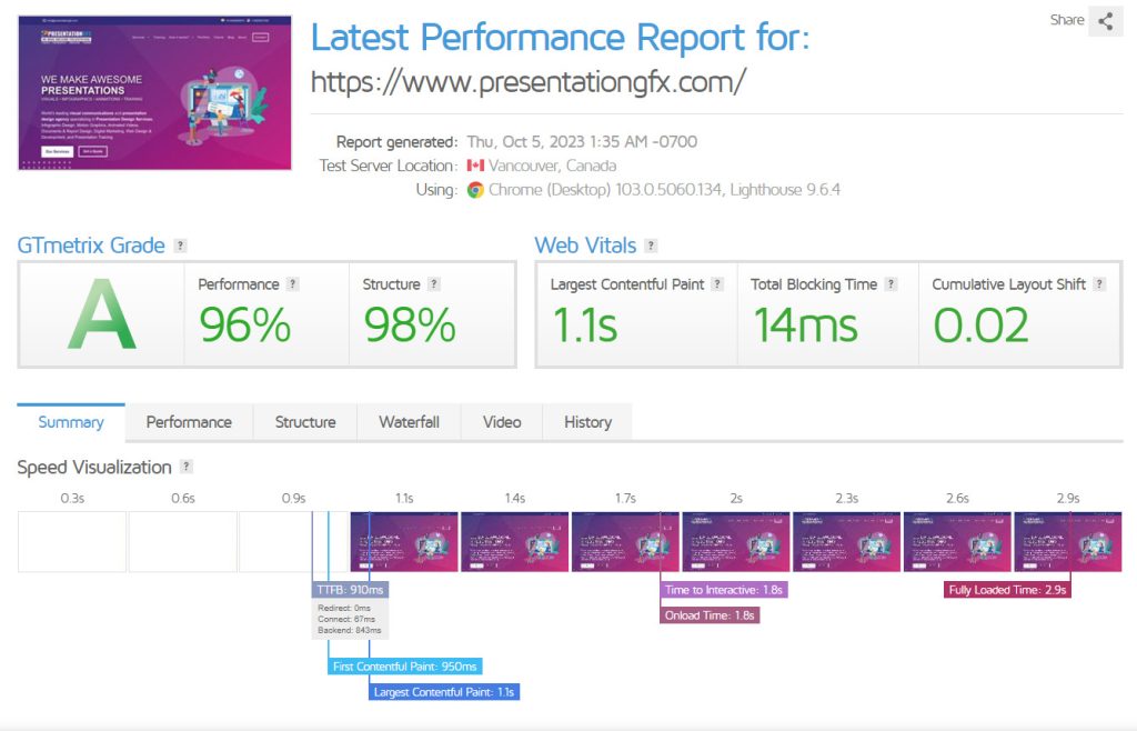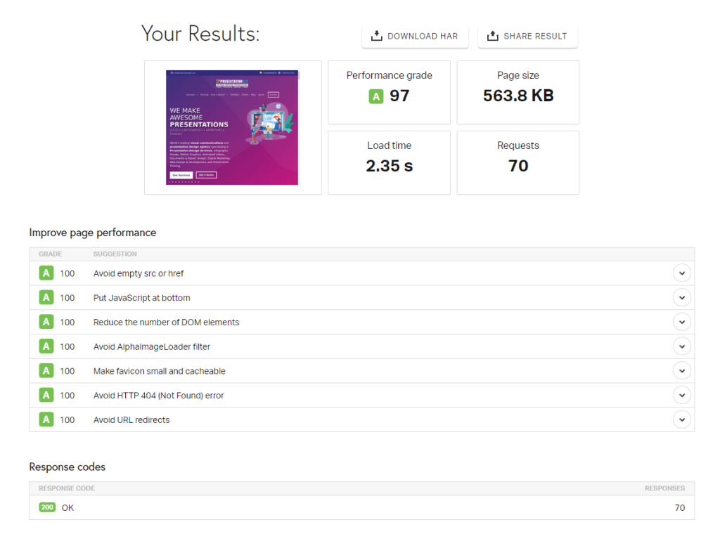 Background: PresentationGFX (www.presentationgfx.com), a global presentation design agency, had its website built on WordPress technology. Given the nature of the business, the website had to have images and design elements to showcase the company’s work.