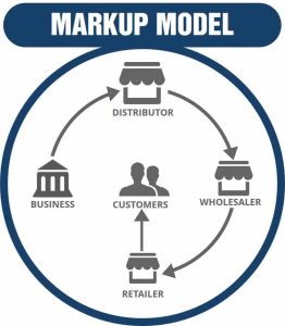 Retailers, wholesalers, and distributors use the markup model, buying products at a lower price and selling them at a higher price to earn a profit.