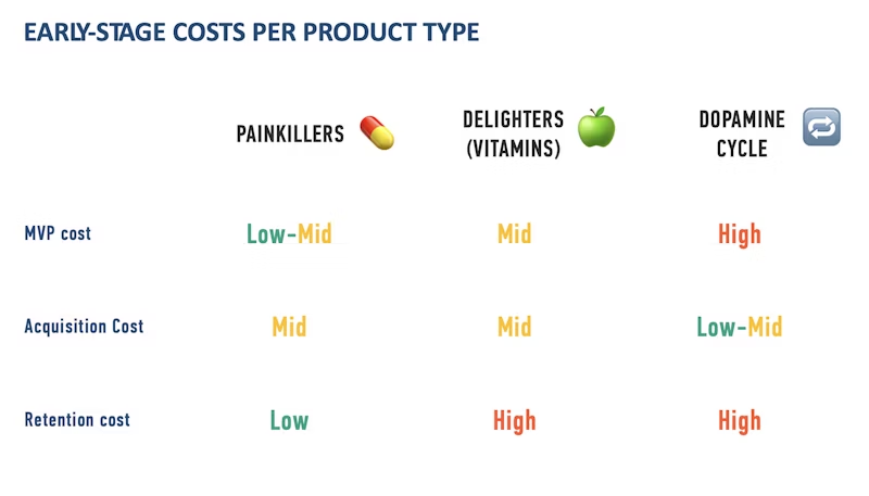 - Investor Perspective: Painkillers are highly attractive to investors due to their clear market demand and scalability. Their ability to address immediate problems ensures faster adoption and predictable revenue streams, making them safer bets for early-stage investment.