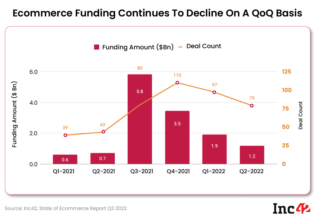 The D2C sector has experienced a noticeable decline in funding, particularly in recent quarters. Data indicates that ecommerce funding in the second quarter of 2022 declined by 36.84% to $1.2 billion, down from $1.9 billion in the previous quarter. Furthermore, the number of deals in Q2 2022 plummeted by 18.55% to 79, compared to 97 in Q1 2022. This decline in funding has raised concerns about the sector’s long-term viability.
